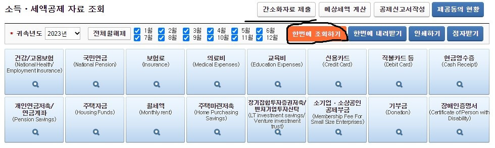 주황색의 "한번에 조회하기"클릭하시면 됩니다.